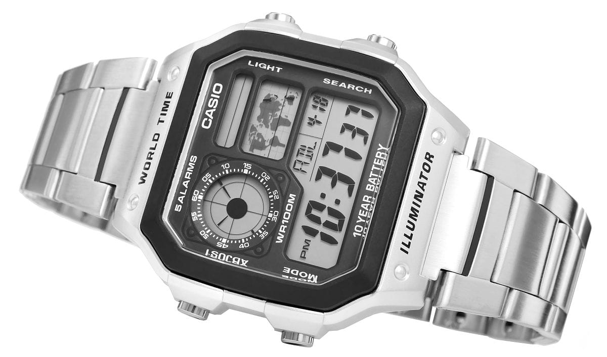 - Tarcza: Kwarcowa. Automatyczny kalendarz: rozbudowany datownik, który automatycznie dopasowuje datę w przypadku krótszych miesięcy; Timer: możliwość odliczania od zaprogramowanego czasu do zera; Zegar 12/24: możliwość wyświetlania godziny w trybach 12 i 24 godzinnych; Stoper: 1/100 mierzy czas do jednej setnej sekundy; Czas światowy: zegarek posiada wyświetlanie czasu w różnych strefach czasowych; Alarm: zegarek może sygnałem dźwiękowym informować 5 razy w ciągu doby.