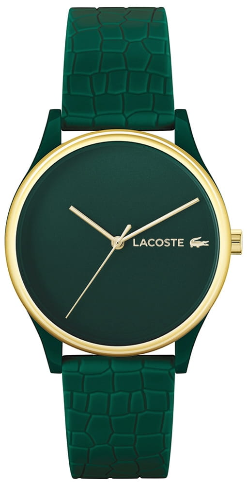 Głęboka, zielona tarcza, niczym tajemnicze, tropikalne lasy, przyciÄ…ga spojrzenia i wprowadza aurÄ™ ekskluzywnoĹ›ci. To nie jest zwykĹ‚y zegarek, to maĹ‚a podróż w Ĺ›wiat natury, w ktĂłrym dzikość i elegancja idÄ… rÄ™ka w rÄ™kÄ™. KaĹĽde spojrzenie na tarczÄ™ przypomina, ĹĽe jesteĹ› kobietÄ…, ktĂłra potrafi odnaleźć siÄ™ zarĂłwno w miejskiej dĹĽungli, jak i w tych bardziej egzotycznych rejonach. Pasek, ktĂłry odwaĹĽnie nawiÄ…zuje do tekstury krokodylej skĂłry, nadaje caĹ‚oĹ›ci wyjÄ…tkowego pazura. To detal, ktĂłry mĂłwi sam za siebie – drapieĹĽny, wyrazisty, peĹ‚en siĹ‚y, a jednoczeĹ›nie niesamowicie stylowy. Zielony kolor nie jest tu przypadkowy – to symbol ĹĽycia, energii i natury, ale w połączeniu z fakturÄ… krokodylej skĂłry nabiera nieco buntowniczego, nieokieĹ‚znanego charakteru. Głęboka zieleĹ„, poĹ‚yskujÄ…ca pod Ĺ›wiatĹ‚em, zmienia siÄ™ niczym kameleon, dostosowujÄ…c siÄ™ do nastroju i stylu wĹ‚aĹ›cicielki. ElegancjÄ™ zegarka podkreĹ›la subtelnie poĹ‚yskujÄ…cy zĹ‚oty napis LACOSTE, a miejsce godziny 3 zdobi kultowy zĹ‚oty krokodyl, ktĂłry niczym biĹĽuteryjny akcent dodaje caĹ‚oĹ›ci luksusowego charakteru.Â