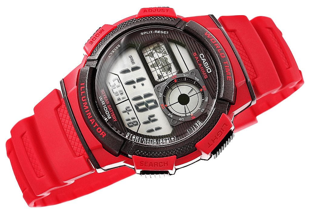 Model CASIO z Multi Time, światowym czasem, stoperem, alarmem x 5 i minutnikiem - a to wszystko 10 lat na jednej baterii. Casio AE-1000W to zegarek, który nadąża za Tobą - tarcza inspirowana kokpitem samolotu nadaje mu surowy, techniczny charakter, który podkreśla męski styl i dynamiczny tryb życia. Dzięki mapie świata i funkcji World Time możesz jednym rzutem oka sprawdzić czas w różnych strefach, co sprawia, że to idealny wybór dla podróżników i profesjonalistów pracujących na międzynarodową skalę. Wyświetlacz LC Analog sprawia, że zawsze masz pod ręką godzinę swojego miasta domowego, a wodoodporność do 100 metrów pozwala na swobodne użytkowanie zegarka w trudniejszych warunkach. To zegarek dla mężczyzn, którzy oczekują więcej – precyzji, trwałości i stylu.