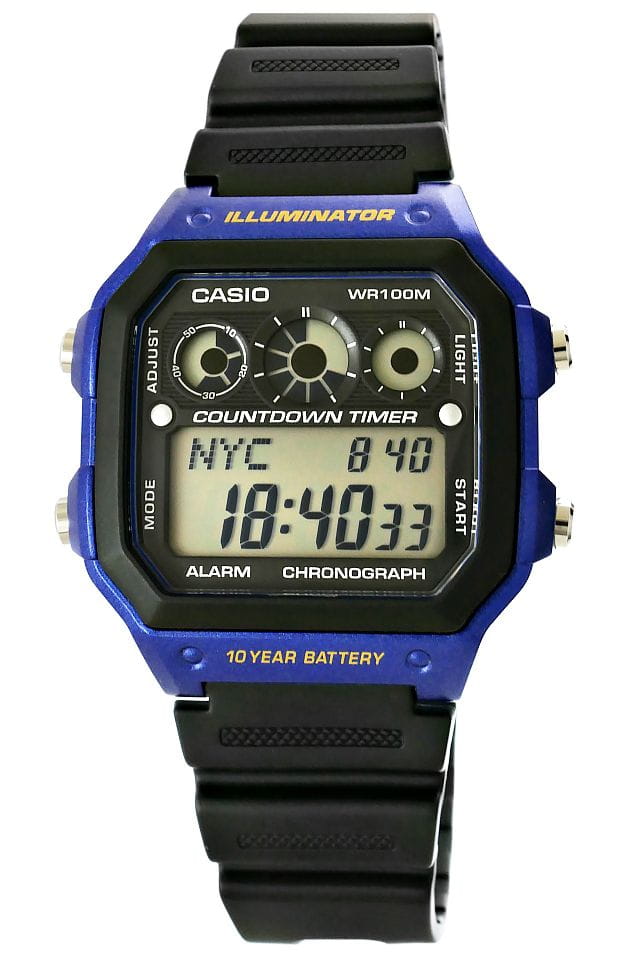 CASIO AE-1300WH to zegarek, który w pełni odpowiada męskiemu stylowi życia. Z czasem światowym i 29 strefami czasowymi nigdy nie stracisz orientacji w podróży. Stoper z funkcją dodawania czasu idealnie sprawdzi się w trakcie treningów, a 9 minutników z auto-powtarzaniem pozwoli na precyzyjne interwały. Codzienny alarm i sygnał godzinowy przypomną o ważnych momentach, a podświetlenie LED w bursztynowym kolorze ułatwi korzystanie w ciemności. Zegarek jest odporny na wodę do 100 metrów, ma pełny kalendarz do 2099 roku i zapewnia dokładność do 30 sekund na miesiąc. Funkcjonalność, która trafia prosto w męskie potrzeby – precyzyjnie, niezawodnie, stylowo.