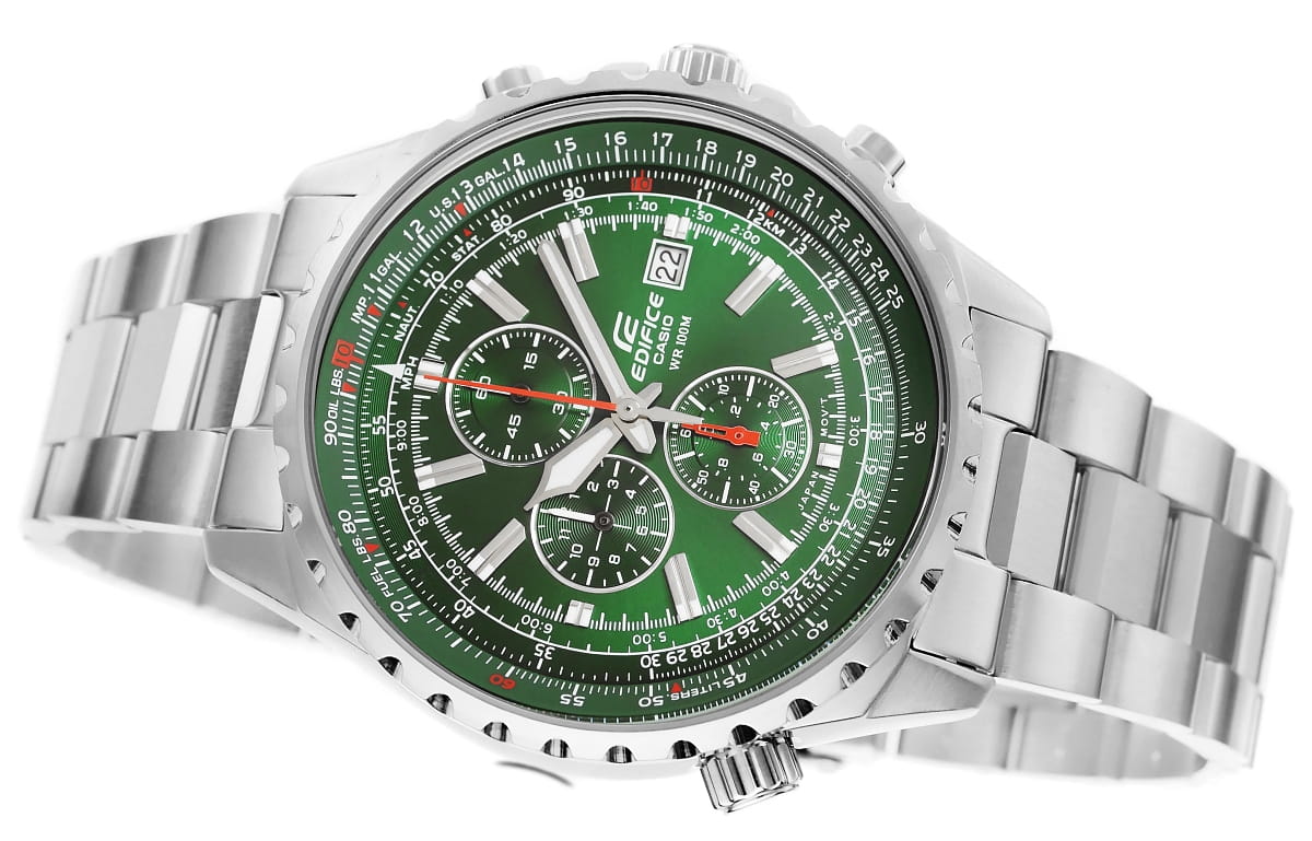 Model dla mężczyzn ceniÄ…cych precyzjÄ™, funkcjonalność i techniczny design. Co znajdziesz w Ĺ›rodku? WewnÄ…trz zegarka kryje siÄ™ stoper 1/20 sekundy oraz obrotowa suwakowa skala logarytmiczna, umoĹĽliwiajÄ…ca precyzyjne pomiary i obliczenia czasu, prÄ™dkoĹ›ci, zuĹĽycia paliwa i wielu innych parametrĂłw. Solidna bransoleta ze stali nierdzewnej zapewnia jeszcze lepsze dopasowanie do nadgarstka dziÄ™ki mniejszym, zaokrÄ…glonym segmentom, a karbowany bezel, precyzyjne znaczniki godzin na tarczy oraz szkĹ‚o mineralne nadajÄ… zegarkowi zaawansowany technicznie design.Â