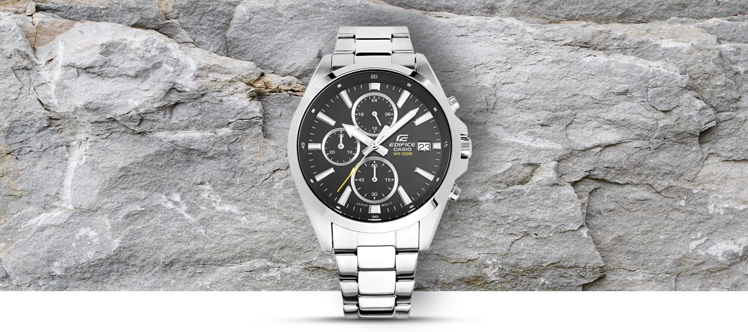 CASIO EDIFICE udowadnia swoją wszechstronność. Bez względu na to, czy postawisz na klasyczny model ze stalową bransoletą, sportowy wariant z elastycznym paskiem, czy elegancką wersję na pasku ze skóry naturalnej – każdy EDIFICE na nadgarstku łączy sportowy styl z wyrafinowanym wyglądem.