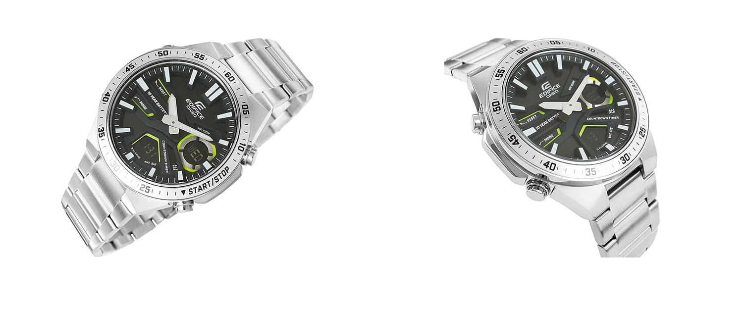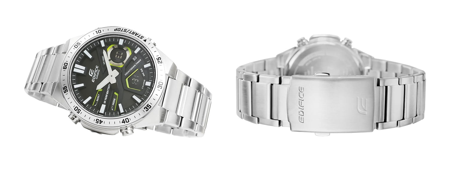 W niektórych modelach zastosowano zakręcany dekiel, który zapewnia maksymalne bezpieczeństwo i wygodę — chroniąc precyzyjne mechanizmy, i umożliwiając łatwą wymianę baterii. Zegarki CASIO EDIFICE charakteryzują się wodoszczelnością na poziomie 10 BAR, a niektóre modele nawet do 20 BAR, dzięki czemu sprawdzają się zarówno na co dzień, jak i w wymagających warunkach.