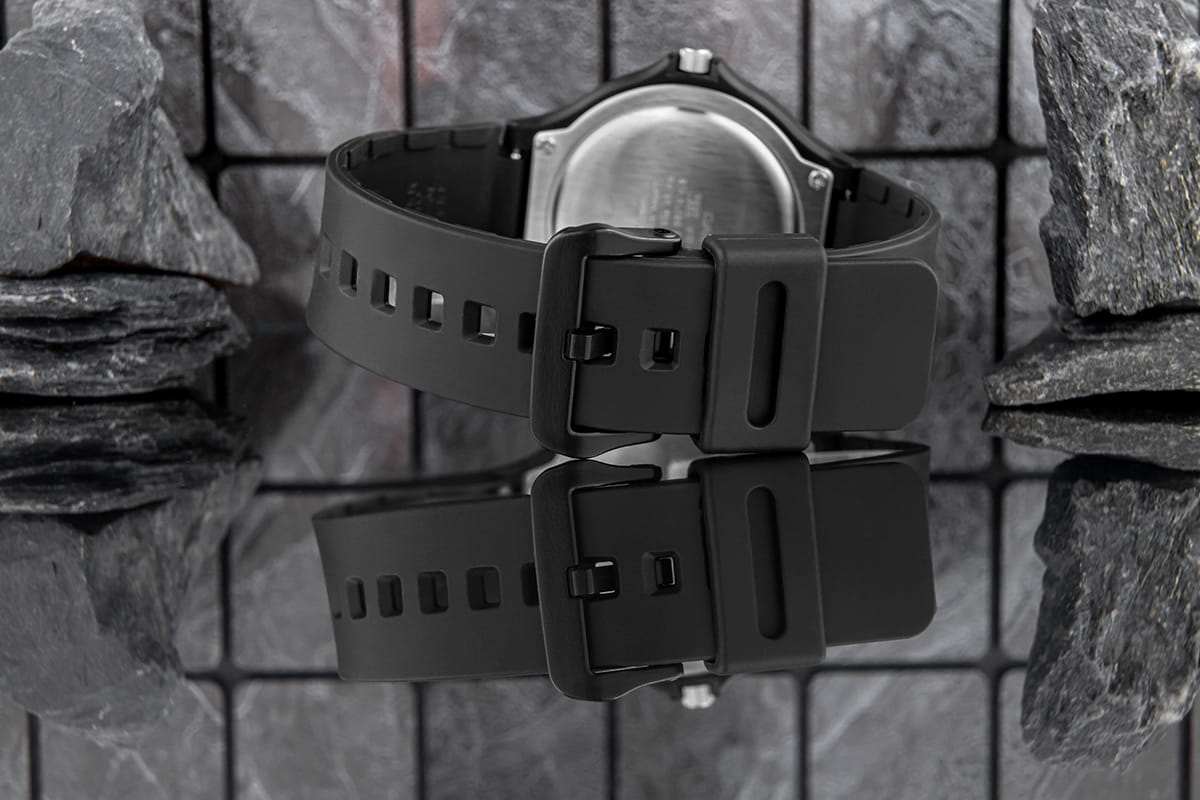 Pasek resinowy jest bardzo lekki, zapewniając komfort w codziennym użytkowaniu, zwłaszcza w przypadku aktywności fizycznej. Materiał żywiczny jest odporny na uszkodzenia mechaniczne, takie jak pęknięcia czy złamania, co czyni go idealnym wyborem do zegarków przeznaczonych do intensywnego użytkowania. Resin jest odporny na wilgoć, działanie wody, a także na zmiany temperatury, co sprawia, że paski te doskonale sprawdzają się w trudnych warunkach. Paski resinowe są łatwe do czyszczenia - wystarczy przetrzeć je wilgotną ściereczką, aby usunąć zabrudzenia.