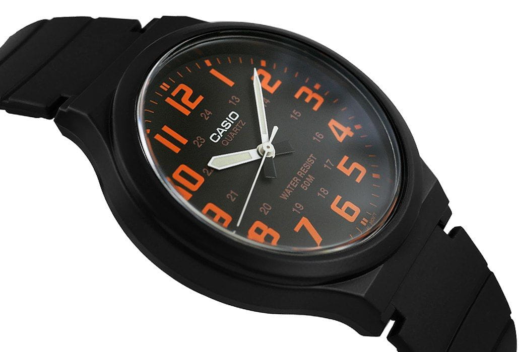 Męski model zegarka CASIO MW-240 łączący minimalizm, funkcjonalność i komfort w męskim wydaniu. Lekka konstrukcja zegarka (zaledwie 35g!) sprawia, że jest niemal niewyczuwalny na nadgarstku. Elastyczny, matowy pasek z żywicy dopasowuje się do ruchów, jest odporny na zużycie i gotowy na każdą sytuację – od spotkań po trening. Duże, czytelne cyfry i kontrastowe wskazówki z fluorescencyjną powłoką pozwalają sprawdzić godzinę w mgnieniu oka, niezależnie od warunków oświetleniowych. Wytrzymałe szkiełko Resin Glass gwarantuje odporność na codzienne użytkowanie, a wodoodporność 5 BAR daje pewność, że zachlapania, deszcz czy szybki prysznic nie będą problemem.