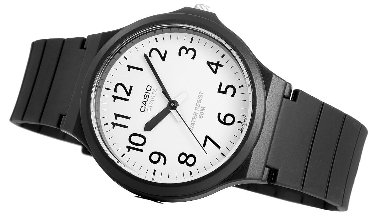 Męski model zegarka CASIO MW-240 łączący minimalizm, funkcjonalność i komfort w męskim wydaniu. Lekka konstrukcja zegarka (zaledwie 35g!) sprawia, że jest niemal niewyczuwalny na nadgarstku. Elastyczny, matowy pasek z żywicy dopasowuje się do ruchów, jest odporny na zużycie i gotowy na każdą sytuację – od spotkań po trening. Duże kontrastowe cyfry oraz wskazówki pozwalają sprawdzić godzinę w mgnieniu oka. Wytrzymałe szkiełko Resin Glass gwarantuje odporność na codzienne użytkowanie, a wodoodporność 5 BAR daje pewność, że zachlapania, deszcz czy szybki prysznic nie będą problemem.