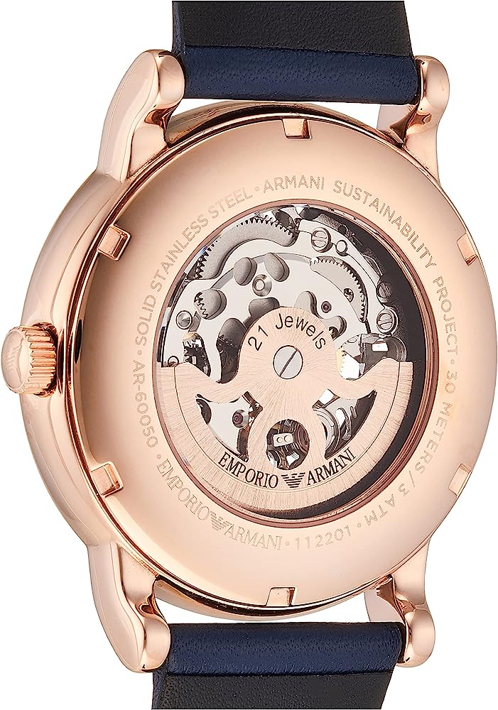 Zegarek męski Emporio Armani LUIGI jest przykładem eleganckiego, klasycznego zegarka automatycznego. Samoczynnie nakręca się, wykorzystując energię kinetyczną powstającą podczas ruchów ręki. Tarcza typu skeleton umożliwia nam obserwację pracy mechanizmu. Pasek ze skóry naturalnej w kolorze granatowym zapewnia elegancje oraz swobodę noszenia. Zegarek Emporio Armani AR60050 bedzię idealnym dodatkiem do męskiej garderoby.