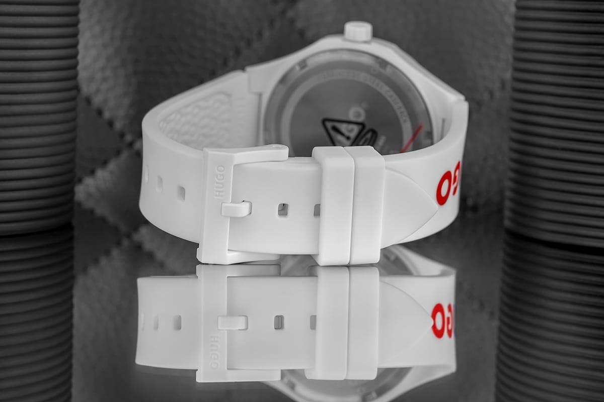 Biała tarcza to kwintesencja prostoty, przełamana czerwonym logo Hugo i dynamicznym sekundnikiem. Ten akcent to jak iskra energii na czystym płótnie – podkreśla Twoją siłę i gotowość do działania. Każde spojrzenie na zegarek przypomina, że prostota może być najpotężniejszym narzędziem. Solidny, biały pasek z dużym, czerwonym logo Hugo to coś więcej niż detal – to wyraz odwagi i pewności siebie. Idealnie łączy sportowy luz z miejskim stylem, tworząc zegarek, który zawsze jest w centrum uwagi. Bez względu na to, czy nosisz go na co dzień, czy na bardziej swobodne wyjścia, Hugo White zawsze podkreśla Twój wyjątkowy charakter.