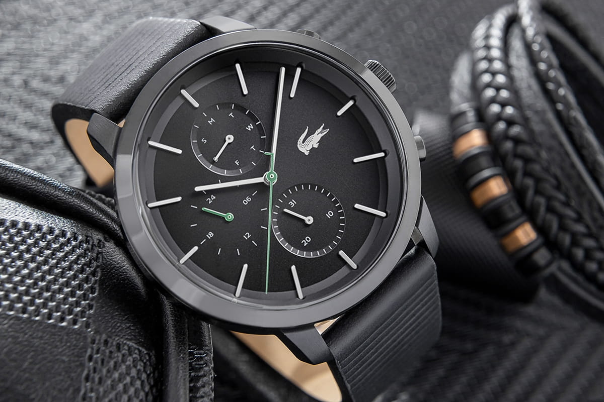 Esencja męskiego minimalizmu i nowoczesnego stylu, który łączy elegancję z surowym, industrialnym charakterem. Całość utrzymana jest w głębokiej, matowej czerni, co nadaje mu wyrazistego, mocnego wyglądu. Zegarek wyróżniają subtelne zielone akcenty na wskazówkach, które dodają mu odrobinę dynamiki i nawiązują do klasycznego logo Lacoste.