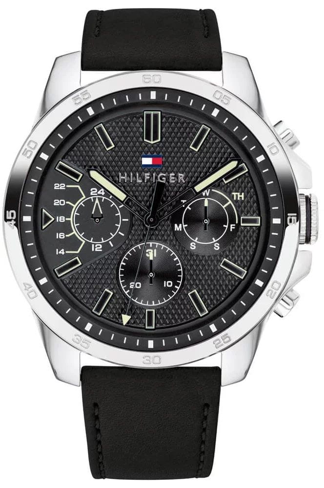 Zegarek Męski Tommy Hilfiger Decker 1791563 wyposaĹĽony jest w dziaĹ‚ajÄ…ce chronografy: czasu dobowego 12/24h- wyĹ›wietlanie godziny z uwzglÄ™dnieniem caĹ‚ej doby umoĹĽliwia rozróżnienie godzin przed i popoĹ‚udniowych oraz datownikiem dni miesiÄ…ca i tygodnia