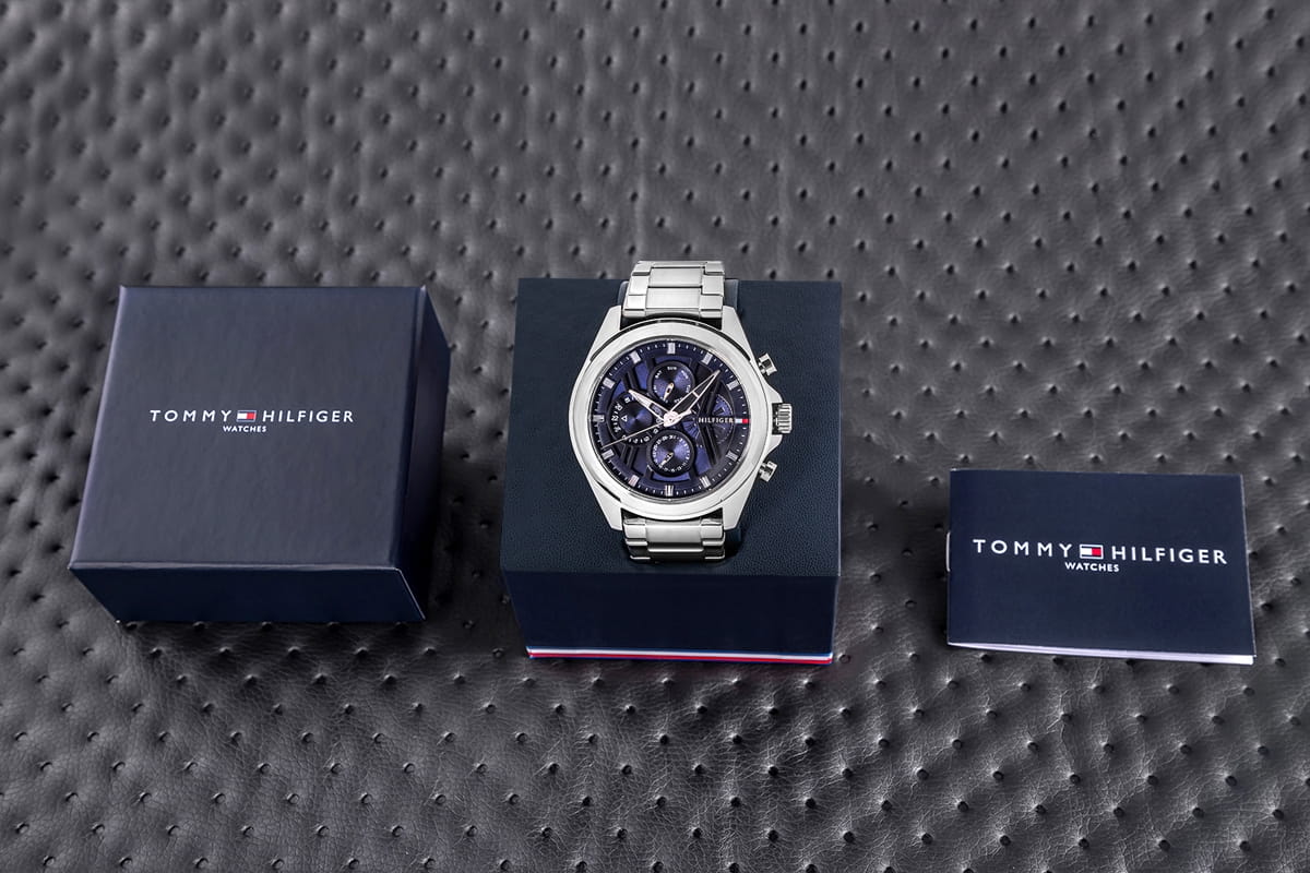 Z zegarkiem otrzymasz stylowe, firmowe pudełko w kolorystyce marki Tommy Hilfiger. To eleganckie opakowanie stanowi idealne uzupełnienie, które sprawia, że zegarek staje się gotowym, luksusowym prezentem. To subtelny akcent, który podkreśla wyjątkowy charakter i klasę marki Tommy Hilfiger.