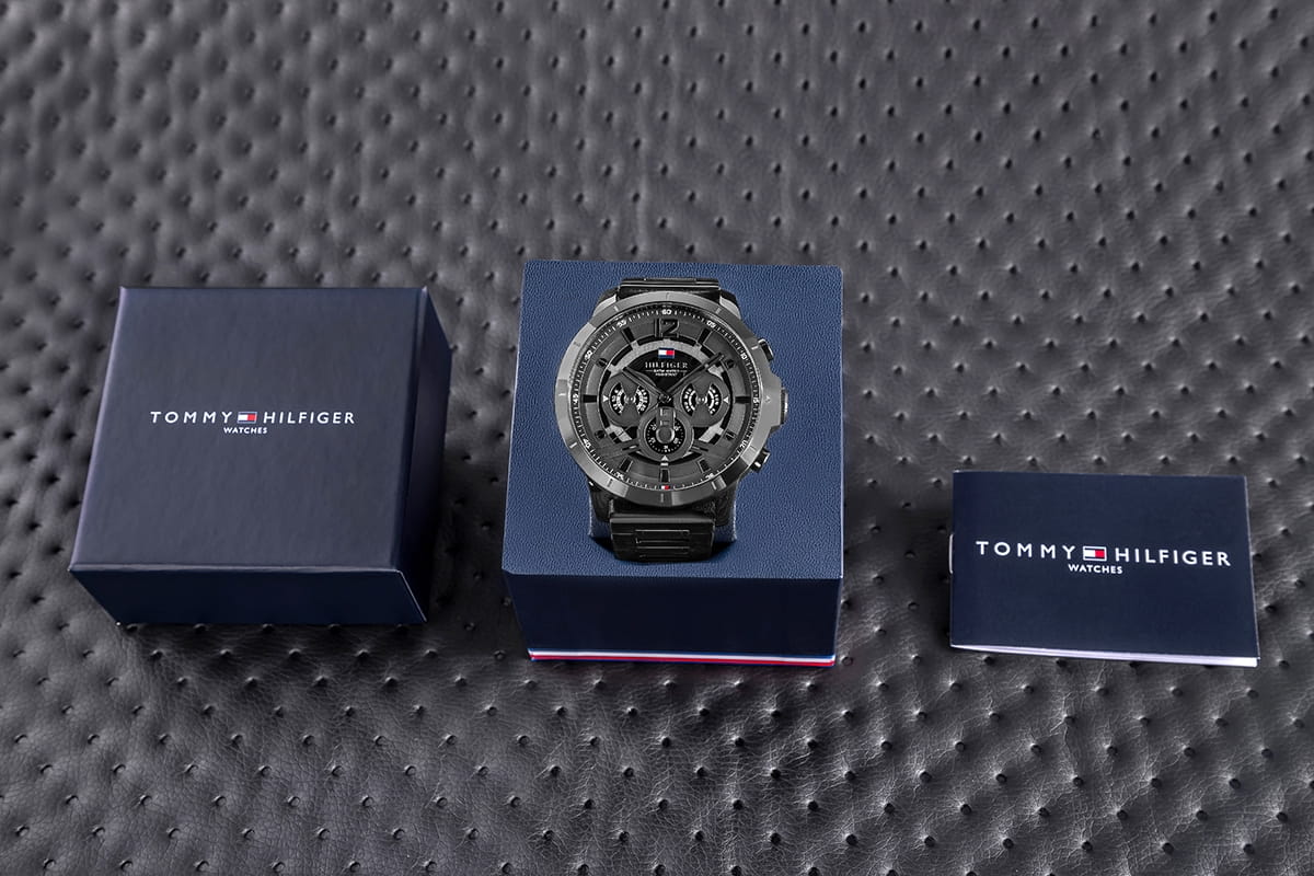 Z zegarkiem otrzymasz stylowe, firmowe pudełko w kolorystyce marki Tommy Hilfiger. To eleganckie opakowanie stanowi idealne uzupełnienie, które sprawia, że zegarek staje się gotowym, luksusowym prezentem. To subtelny akcent, który podkreśla wyjątkowy charakter i klasę marki Tommy Hilfiger.