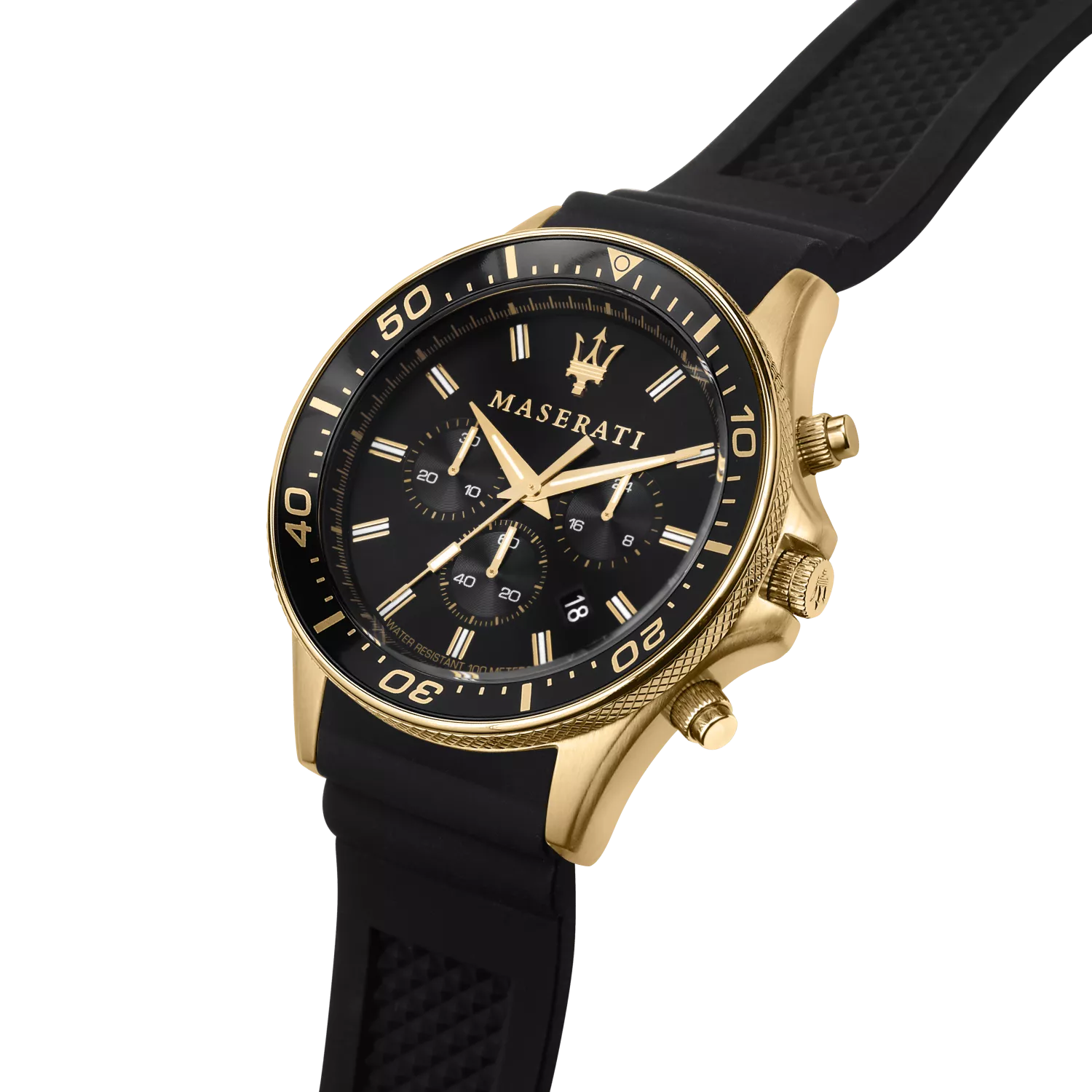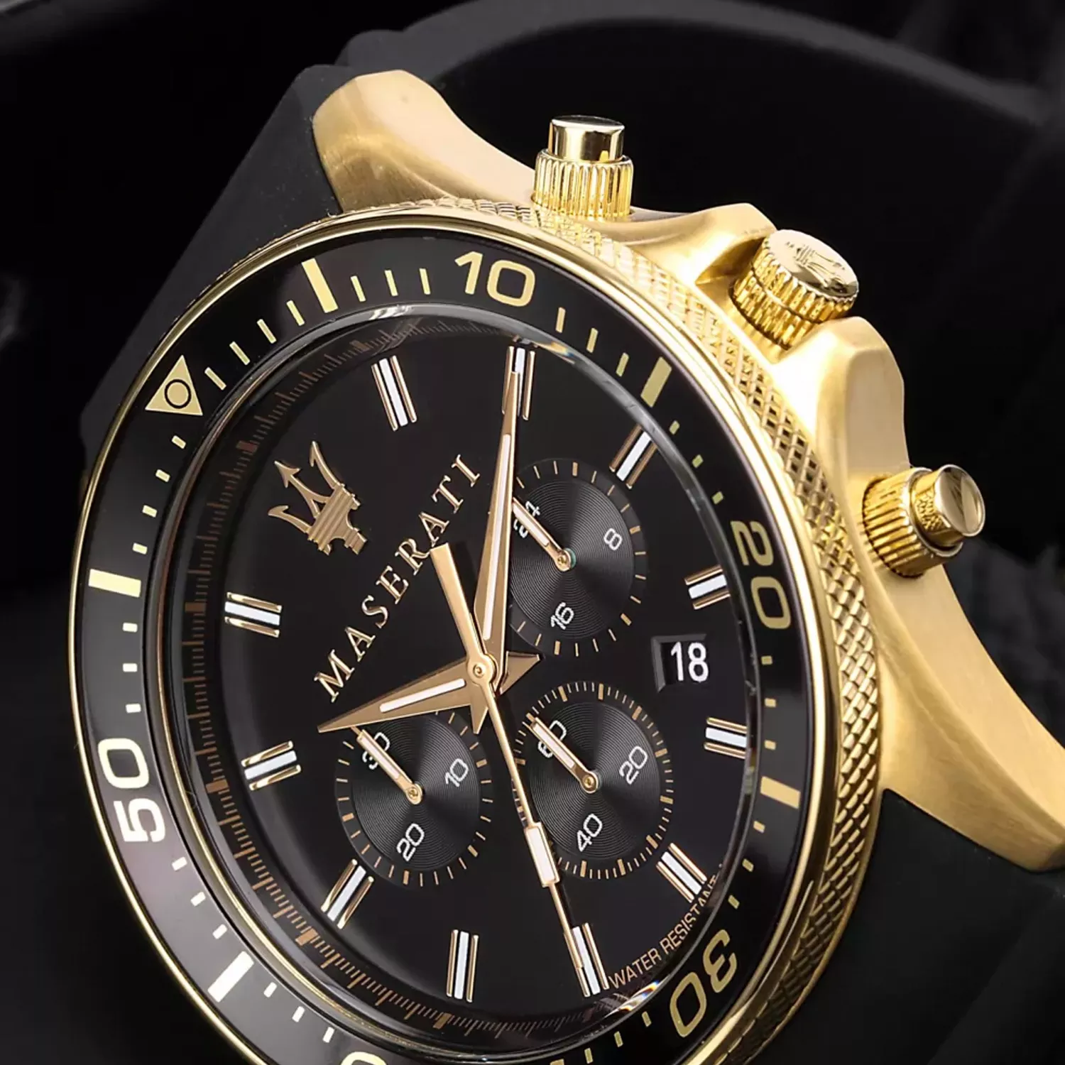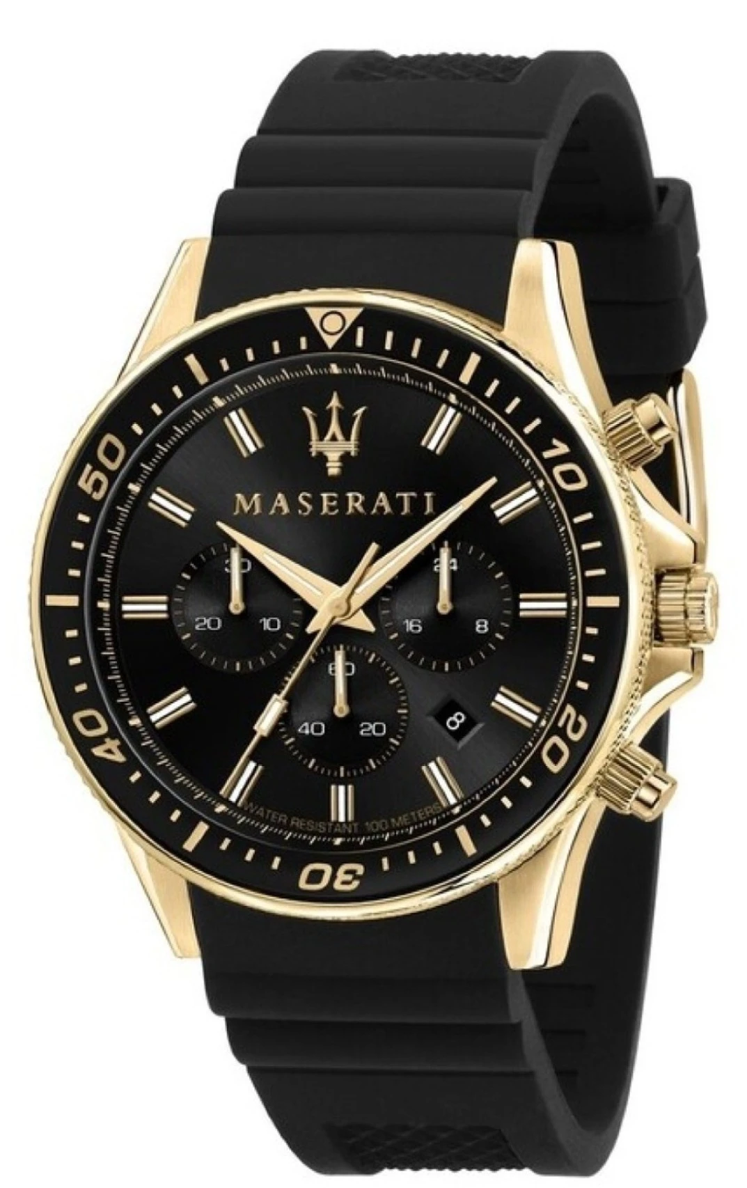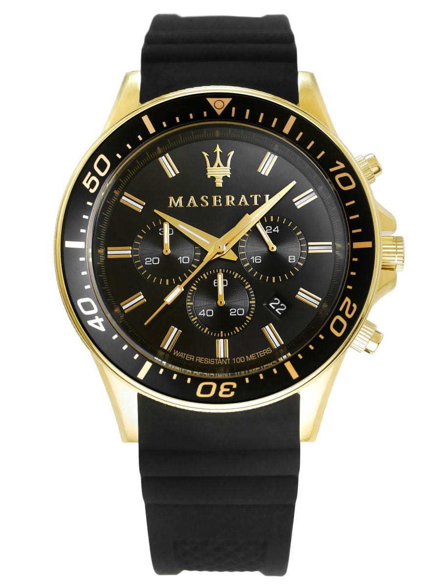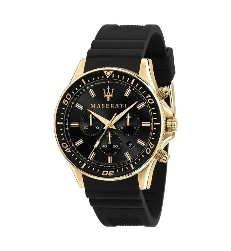 Maserati Sfida to kolekcja stworzona dla mężczyzn, którzy cenią sportowy tryb życia, ale nie chcą rezygnować z luksusowego wyglądu. Model R8871640001 łączy solidną, stalową kopertę w kolorze złotym z czarnym wykończeniem paska i tarczy. Inspiracja zegarkami typu "diver" sprawia, że jest to czasomierz niezwykle czytelny, trwały i gotowy na każde wyzwanie.